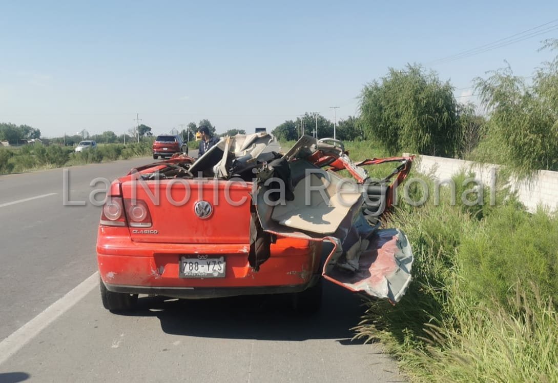 Tres personas sobrevivieron de milagro a un violento choque entre un automóvil y un tráiler sobre el tramo federal de Delicias a Meoqui.