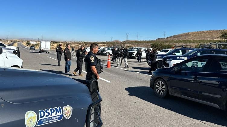 Elementos de la Dirección de Seguridad Pública Municipal (DSPM) trabajan de manera coordinada dentro de la estrategia interinstitucional del Operativo Blindaje Carretero, implementado en la carretera vía corta Chihuahua–Parral.