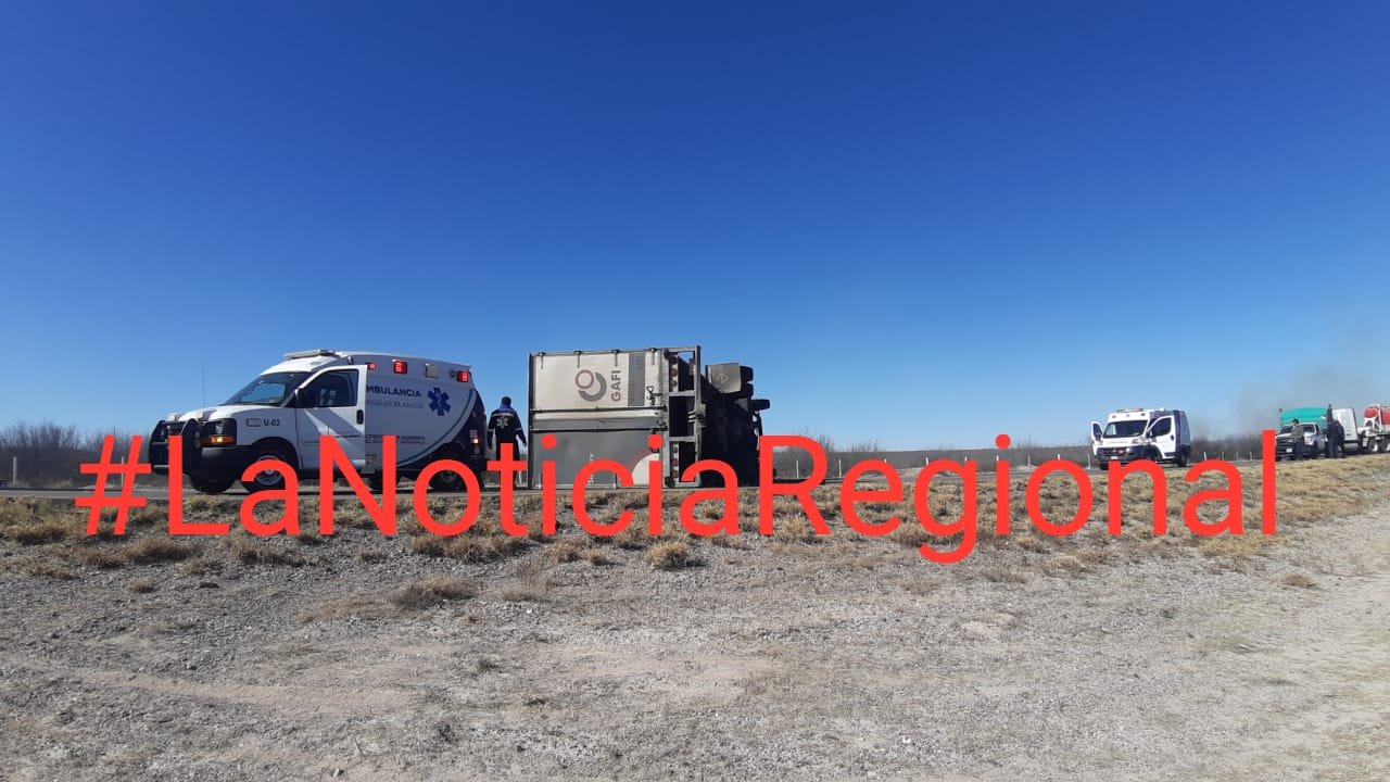 Camargo.- Cerca de las 10 de la mañana se reportó una volcadura de un camión de carga en el kilometro 55 carretera Camargo-Jimenez vía cuota, donde rápidamente acudieron elementos de tránsito y bomberos de Camargo.