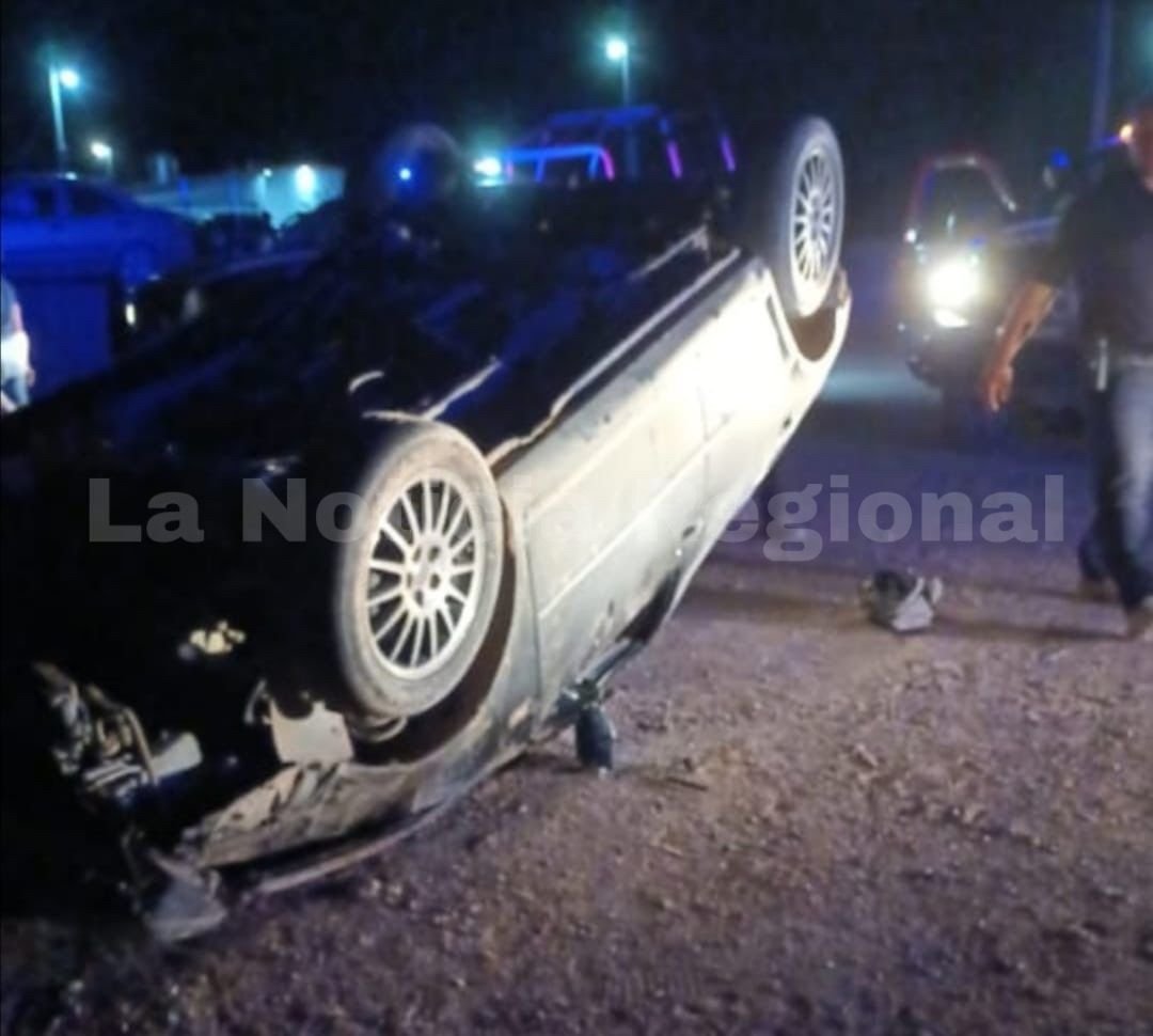 El vehículo tipo sedán de color oscuro se encontraba con los neumáticos para arriba.