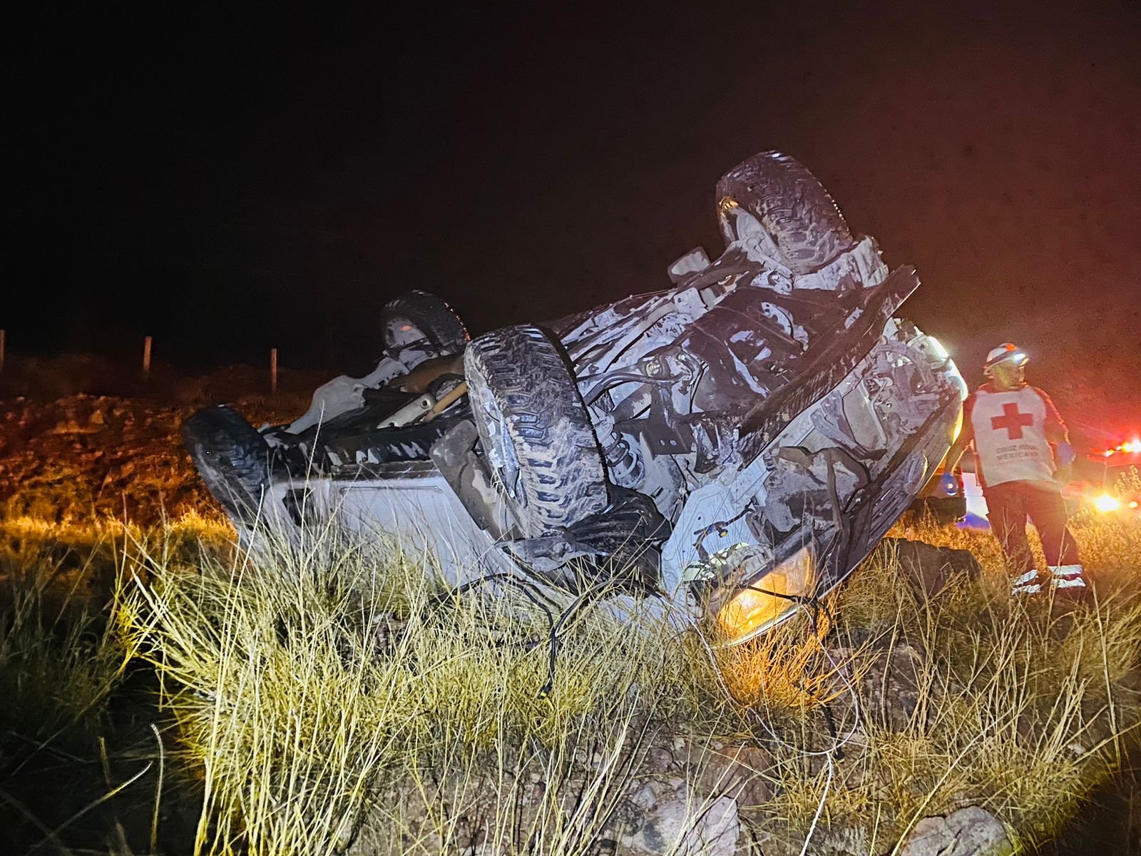 Un fuerte accidente vial tipo volcadura se registró la noche de ayer en la carretera que conduce de Meoqui a Chihuahua, a la altura del kilómetro 182 pasando San Diego de Alcalá.