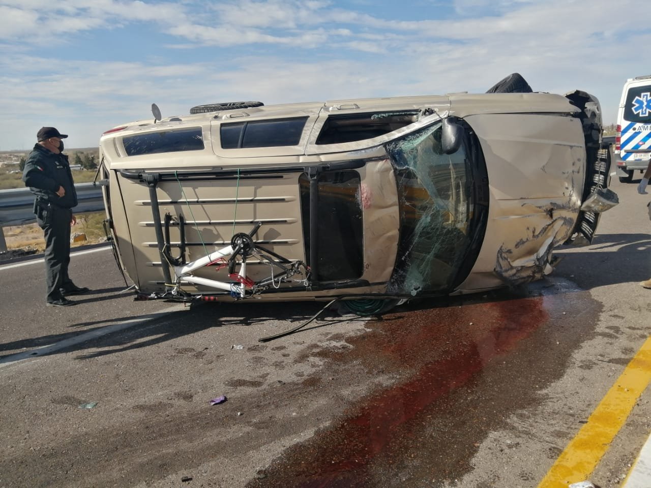 El hecho se presentó en el puente de Conchos en la carretera federal, en un sentido de sur a norte, cuando el conductor de una camioneta Cherokee, perdió el control, impactándose contra el muro de contención, haciendo que volcara alrededor de 8 a 10 metros, terminando por invadir el carril contrario.