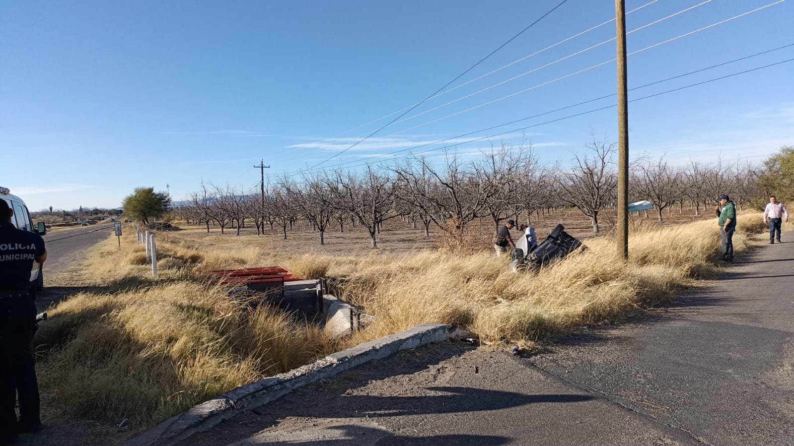Un gran susto se llevó una joven mujer después de volcar en el tramo carretero de Saucillo a Delicias.